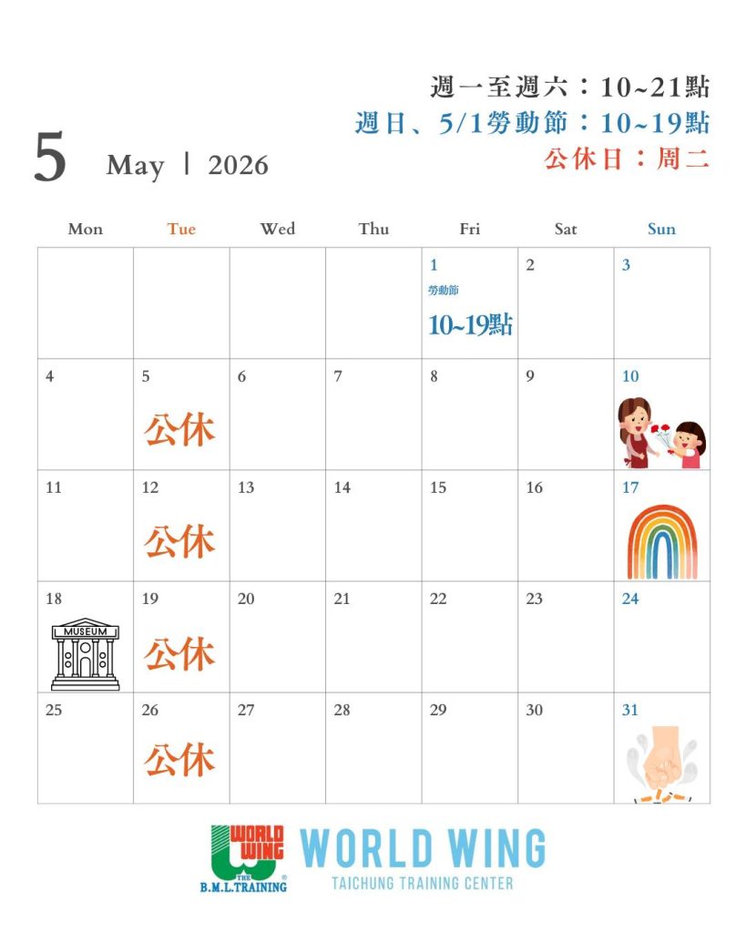 請大家留意營業時間與公休日,若有課程預約或體驗需求,歡迎提前與我們聯繫。期待在 4 月持續與您一起訓練、一起進步