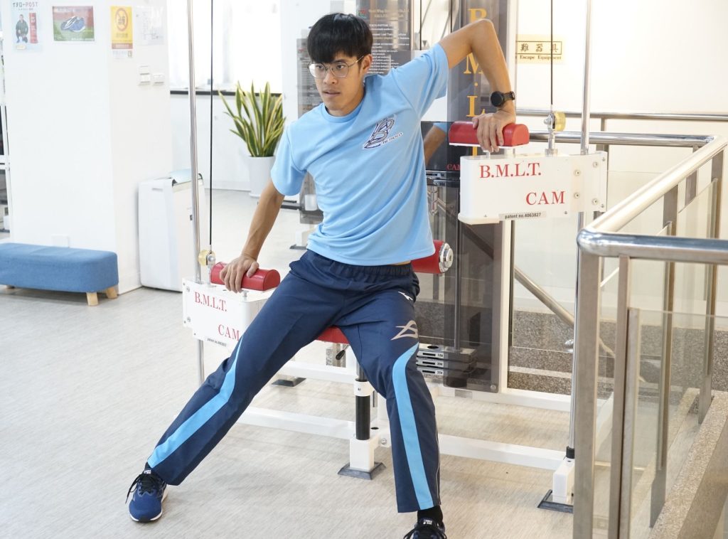 使用這台機器可以活動到鎖骨、肩關節、肩胛骨以及胸廓,有望改善胸廓與肩膀的僵硬。