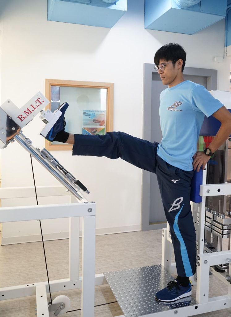是一台在站立狀態下提升髖關節周邊活動角度的機器。